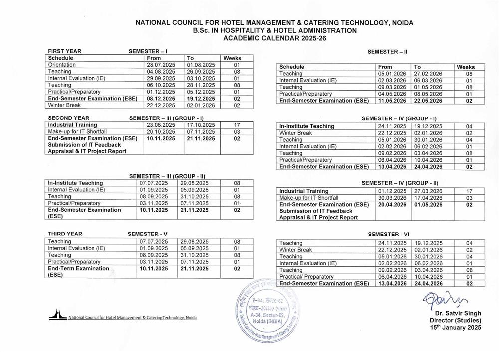 Affiliated to National Council for Hotel Management and Catering technology, Noida